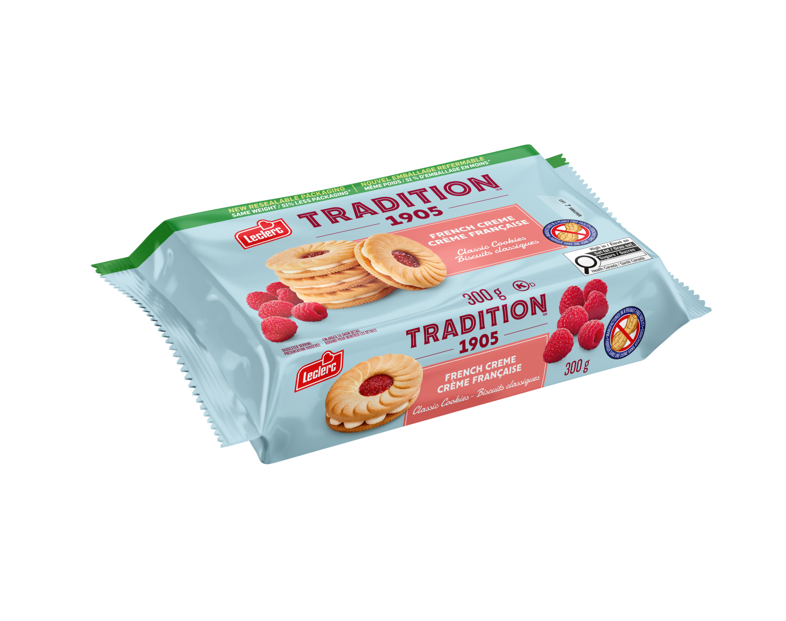 Cookie (enriched wheat flour, sugar, palm oil, canola oil, milk ingredients, sodium bicarbonate, natural flavour, soya lecithin, carotene), Creme (sugar, modified palm and palm kernel oils, wheat starch, natural flavour, soya lecithin, salt), Raspberry filling (glucose, sugar, water, glycerin, fructose, raspberry puree, pectin, sodium citrate, natural flavour, citric acid, carrot and blackcurrant concentrate).