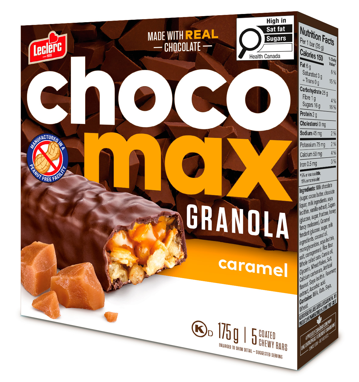 Milk chocolate (sugar, cocoa butter, chocolate liquor, milk ingredients, soya lecithin, vanilla extract), Sugars (glucose, sugar, fructose, honey, fancy molasses), Whole rolled oats, Rice flour, Chocolate chips (sugar, chocolate liquor, cocoa butter, soya lecithin, salt, vanilla extract), Canola oil (canola oil, rosemary extract, ascorbic acid), Wheat flakes, Glycerin, Dried unsweetened coconut, Salt, Calcium carbonate, Natural flavour, Soya lecithin.