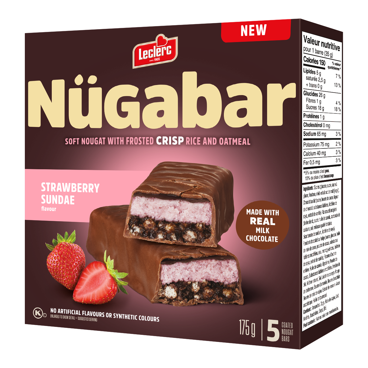 Sugars (glucose, sugar, icing sugar, fructose, honey, dry malt extract [barley]), Milk chocolate (sugar, cocoa butter, chocolate liquor, milk ingredients, soya lecithin, vanilla extract), Frosted crisp rice (rice flour, sugar, canola oil, calcium carbonate, salt, fancy molasses, sodium bicarbonate, soya lecithin), Chocolatey fudge fondant (sugar, glucose, coconut oil, cocoa powder, modified milk ingredients, water, monoglycerides, soya lecithin, vanilla extract), Whole rolled oats, Canola oil, Glycerin, Cocoa powder, Modified milk ingredients, Wheat starch, Natural flavour, Salt, Soya lecithin, Beet red, Almond butter, Peanut butter, Cashew butter, Sunflower oil.