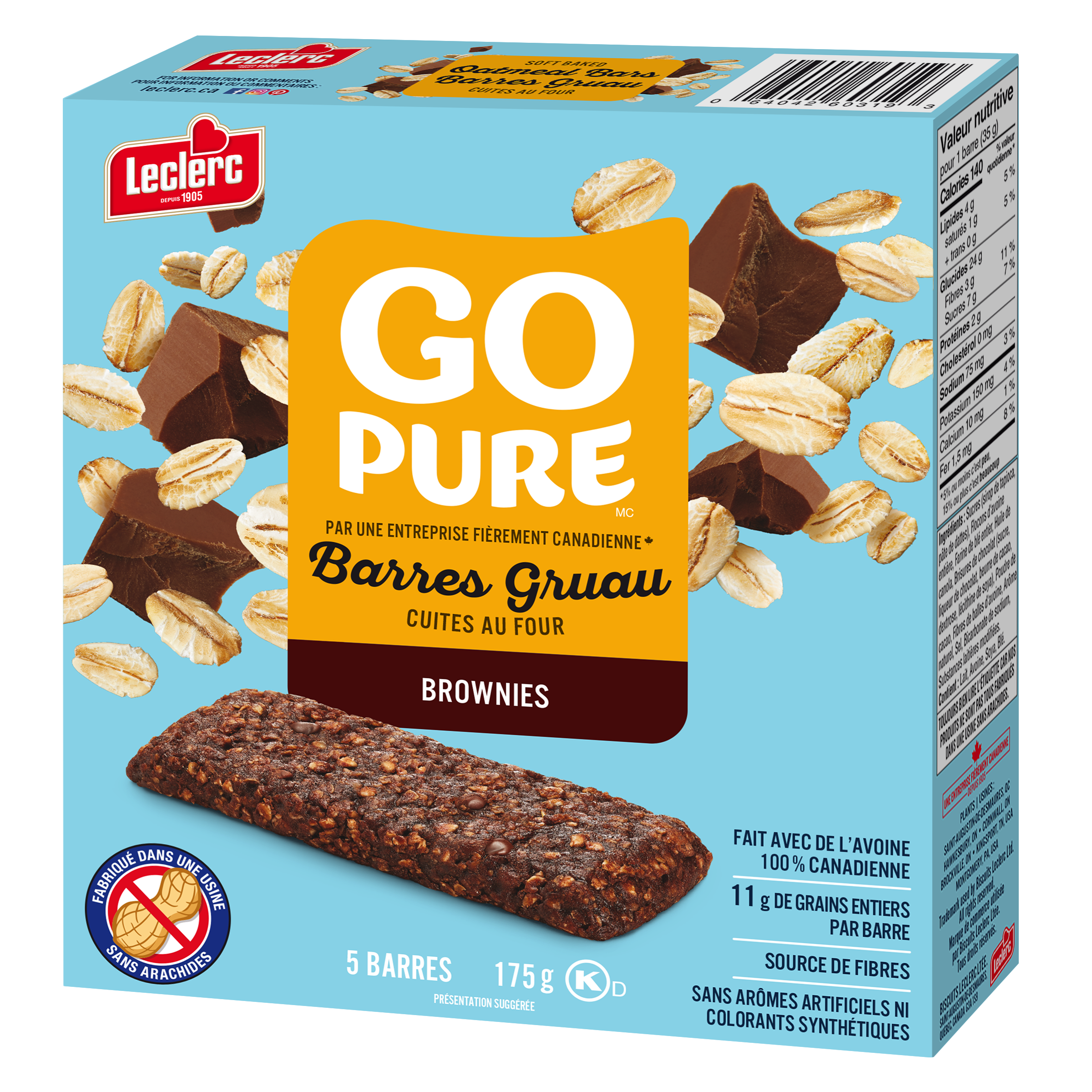 The Go Pure Oatmeal Bar - Brownies is the winner of Better For You Snacks Category of Product of the year 2023. Survey of 4000 people by Kantar. Find the comforting taste of oatmeal in the new Go Pure Brownies Oatmeal bars! The bars are certified peanut-free, made with 100% Canadian oats and contain 11g of whole grains.