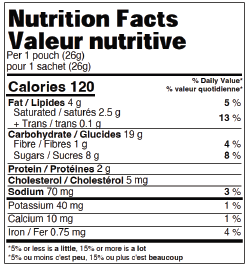Farine de blé enrichie, Chocolat au lait (sucre, beurre de cacao, liqueur de chocolat, substances laitières, lécithine de soya, extrait de vanille), Sucre, Beurre (lait), Bicarbonate de sodium, Sel, Lécithine de soya, Arôme artificiel.
