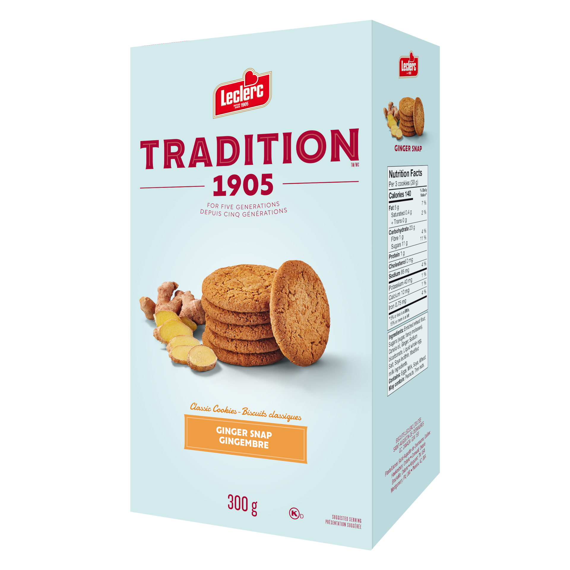 Farine de blé enrichie, Sucres (sucre, mélasse qualité fantaisie), Huile de canola, Gingembre, Bicarbonate de sodium, Oeuf entier liquide, Sel, Lécithine de soya, Substances laitières modifiées. Contient : Oeufs, Lait, Soya, Blé.