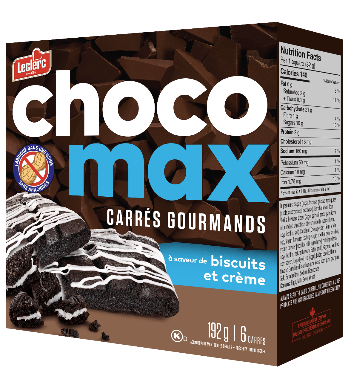 Contient : Oeufs, Lait, Soya, Blé.