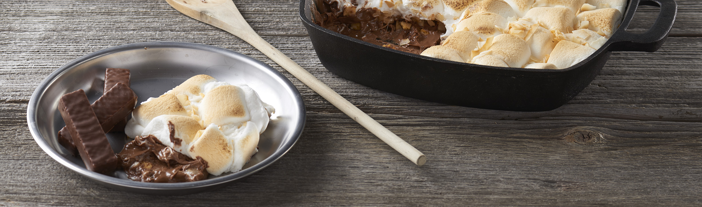 Couvrir et placer la casserole au dessus du gril à feu moyen ou sur une grille au-dessus d’un feu de camp pendant 5 à 10 minutes ou jusqu’à ce que le mélange soit complètement fondu et que les guimauves soient dorées.